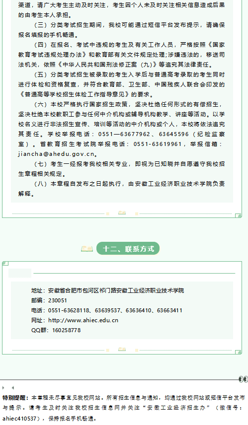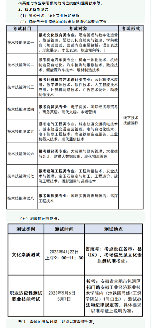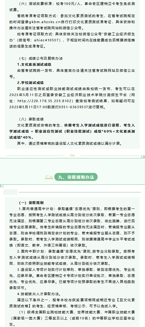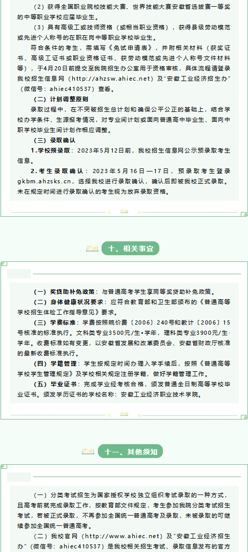 安徽工业经济职业技术学院2023年分类考试招生章程